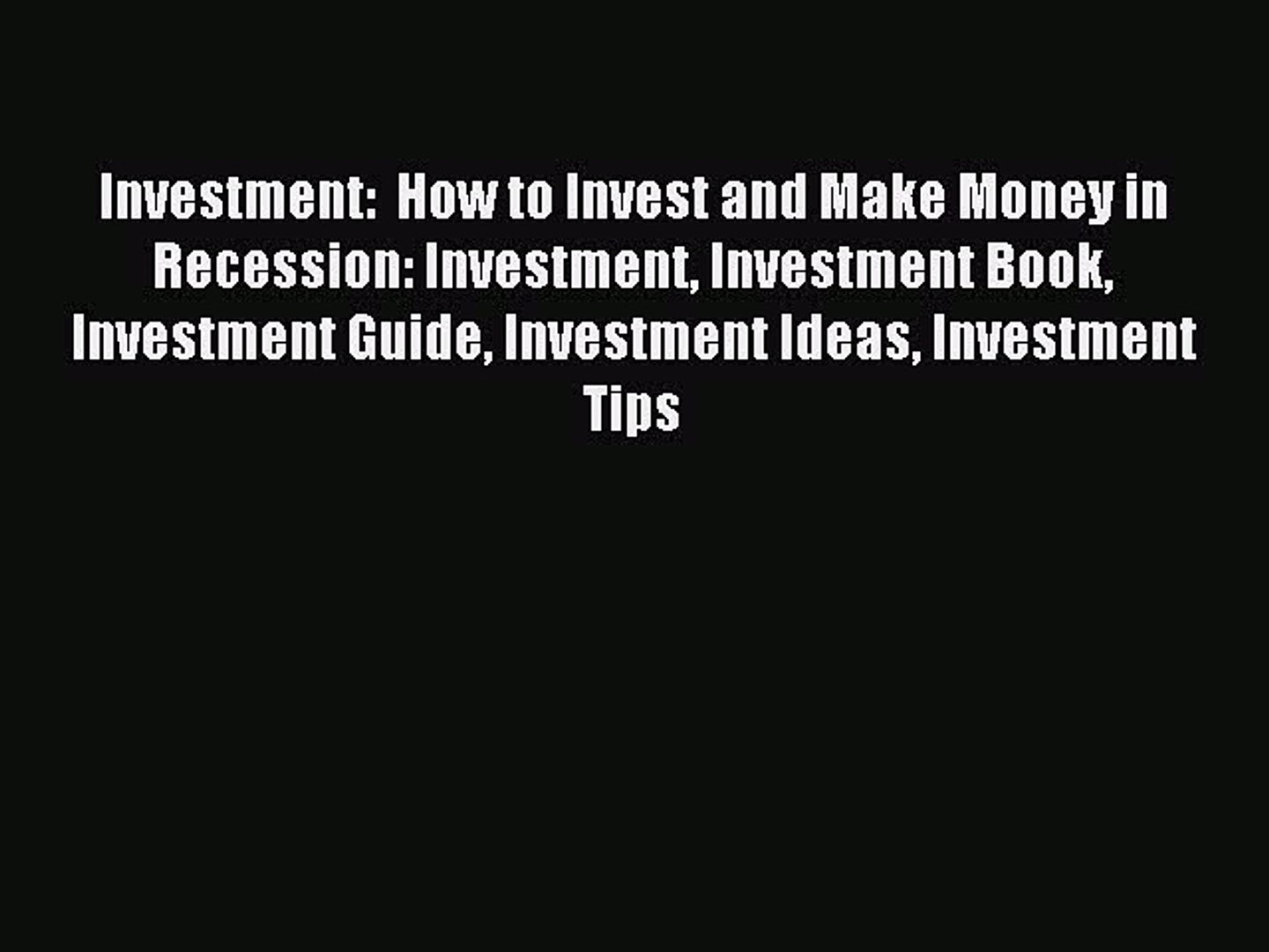 Read Investment How To Invest And Make Money In Recession