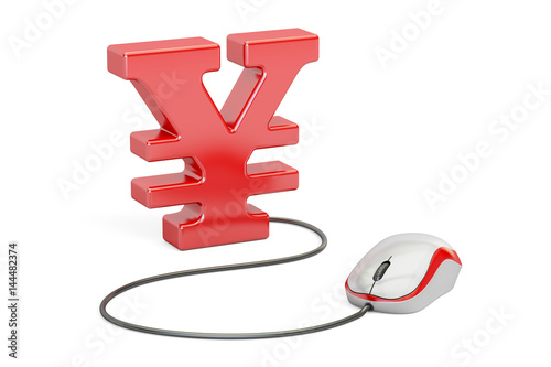 Yen Or Yuan Symbol With Computer Mouse Make Money Online Concept
